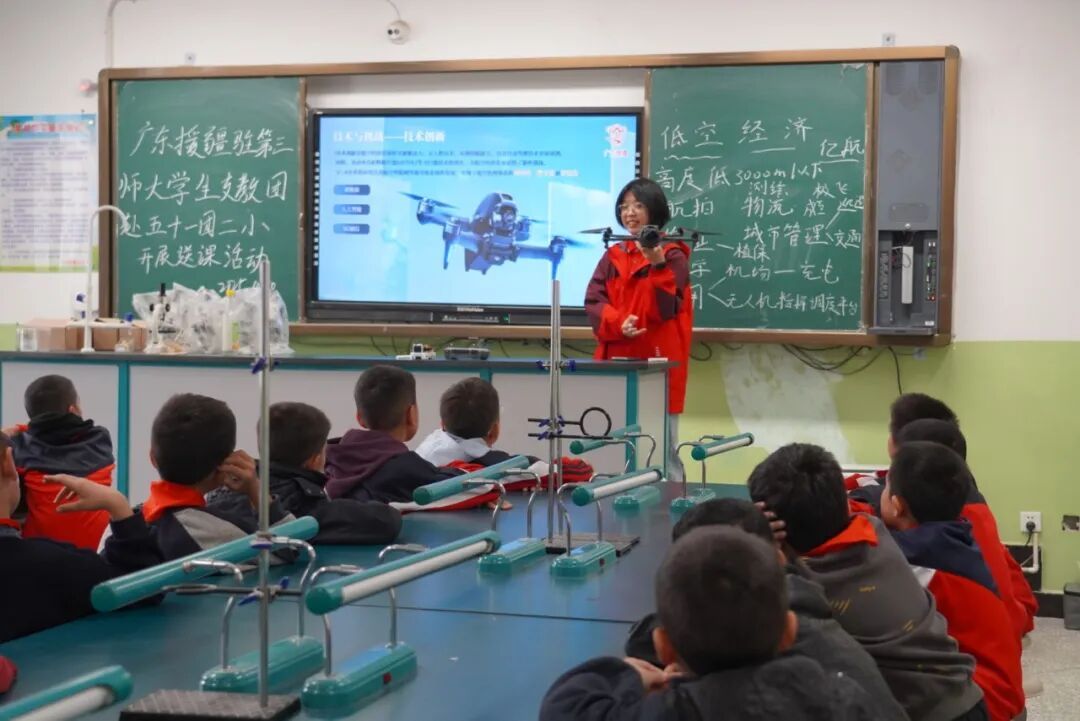 2025年,林芝市巴宜区米瑞乡小学新成立了一支武术队。在莞工第九批大学生援藏(林芝)支教队队长黄锦翰的指导下,孩子们学习起了广东非遗项目——“南棍”。而在图木舒克市,莞工第七批大学生援疆实习支教队队员李佳、钟意、莫双嘉、张文瀚在该市第17届青少年科技创新大赛上,带队拿下了四个市级三等奖。