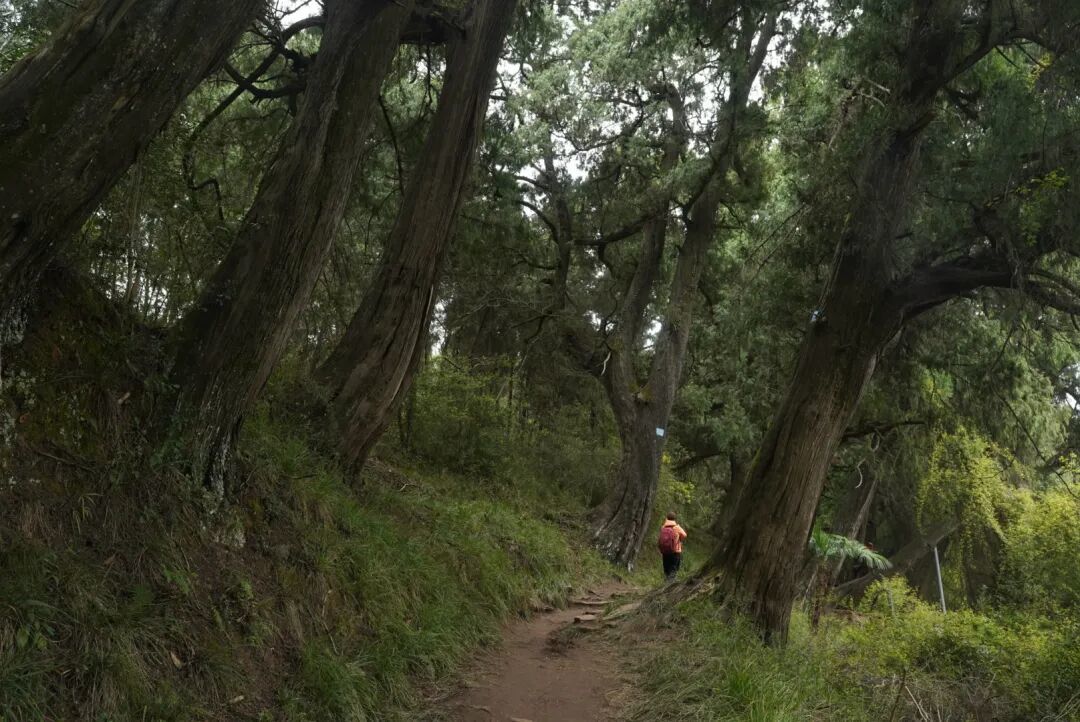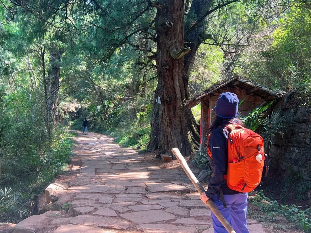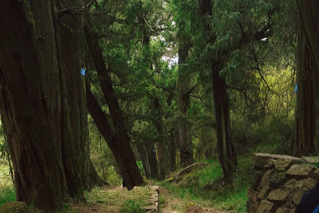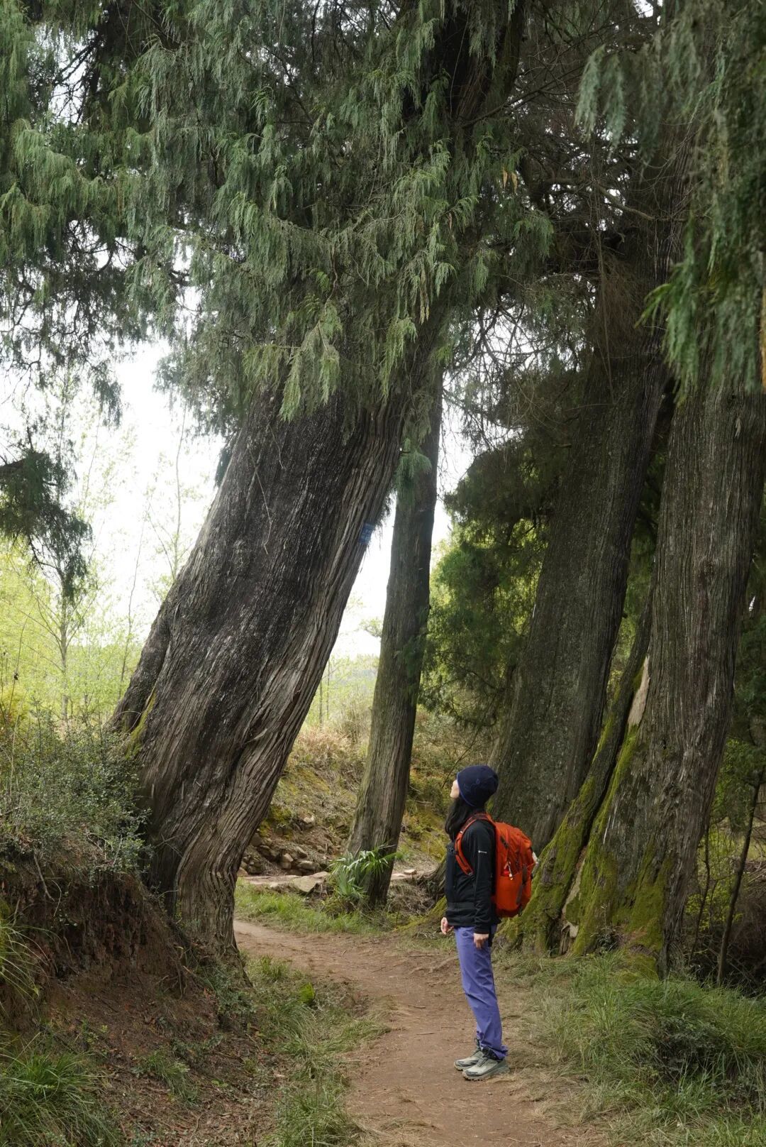路线一:断碑梁-小垭子,全程13公里,耗时6小时,前半段的古柏树基本在900岁、1000岁、1500岁三个树龄阶段,主杆粗长苍劲,枝叶繁茂,撑开如同华盖,道路是石板结合泥地,阳光透过枝叶落在石板上,斑斑驳驳,古风感拉满;后半段树越来越小,风景相比前半段略输一筹,想出片的话还是要在前半段!